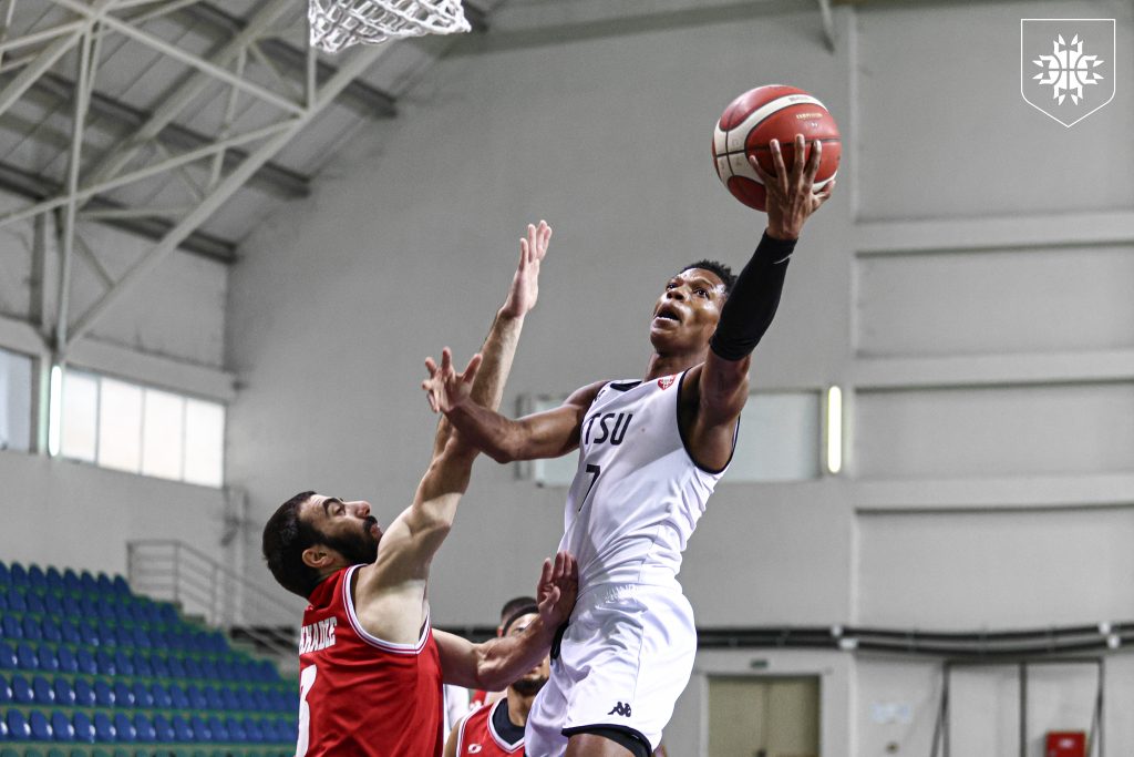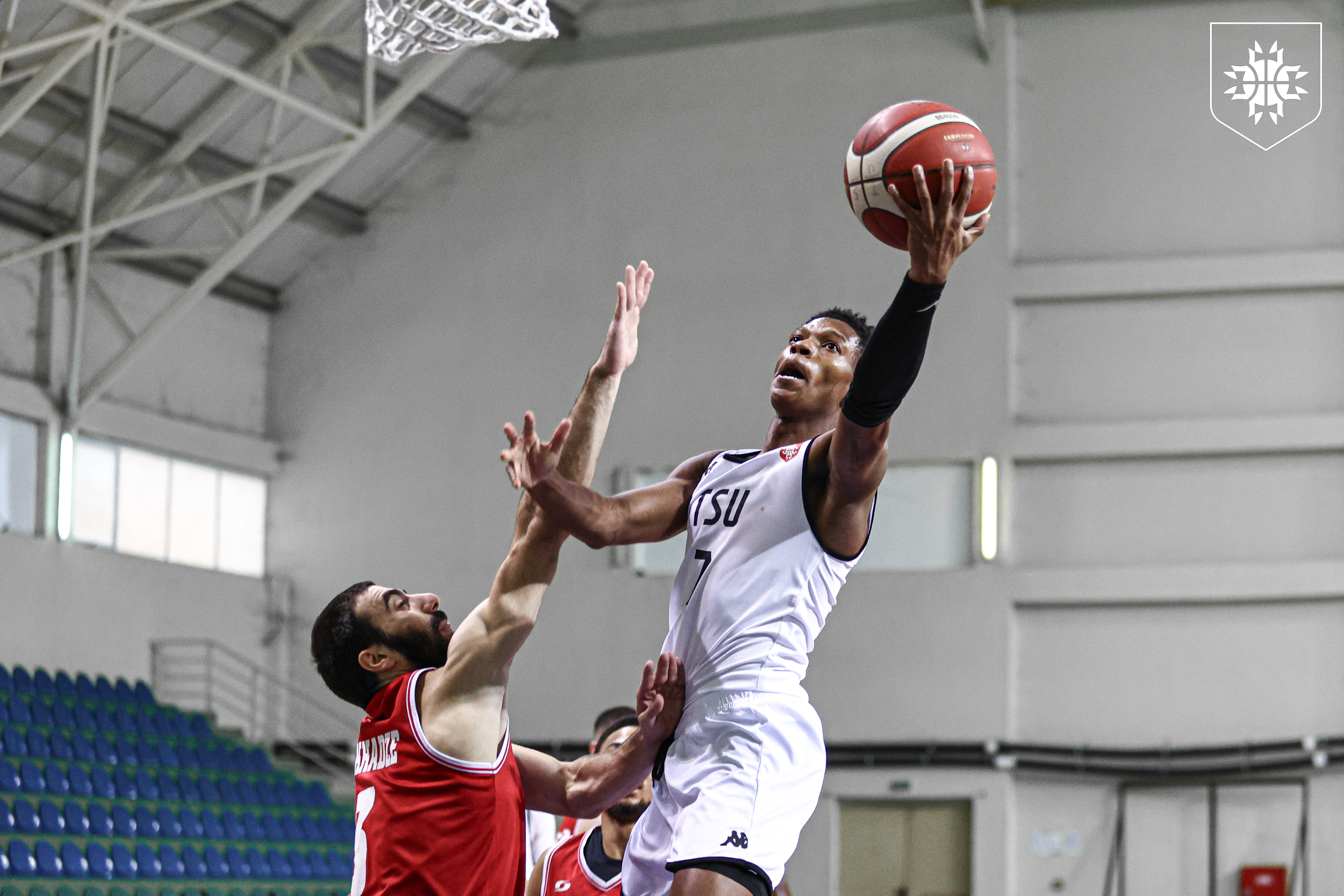 თავიდან თსუ დაწინაურდა, რომელმაც პირველი პერიოდი 28:21 მოიგო. მალე თსუ 10 ქულით დაწინაურდა, თუმცა შემდეგ კსუ-კავკასიის ჯერი დადგა. ბექა წივწივაძის გაწვრთნილი გუნდი ისე ათამაშდა, რომ დროის მონაკვეთი 23:5 მოიგო და მერე პერიოდის მიწურულს 8 ქულით გალიდერდა. დიდ შესვენებამდე დარჩენილ დროში კურვოსიე მაკკოლიმ სამქულიანი ჩააგდო და პირველი ნახევარიც დასრულდა.