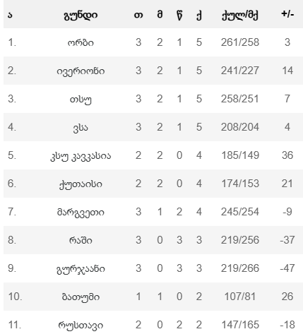 დაბოლოს, გორში ჩატარებულ მატჩზე. რეგიონალურ დერბიში “ივერიონმა” ტყიბულის “ორბს” უმასპინძლა და დაძაბულ ბრძოლაში – 85:90 (სტატისტიკა) დამარცხდა. ტყიბულელთა გამწევ ძალას 2 მური წარმოადგენს. თომას და შონ მურებმა ორბს ულიდერეს და გამარჯვება მოაპოვებინეს. პირველმა (თომასმა) 22 ქულა, 9 პასი და 7 მოხსნა მოაგროვა, ხოლო შონ მურის ანგარიშზე 16 ქულა და ამდენივე მოხსნაა.