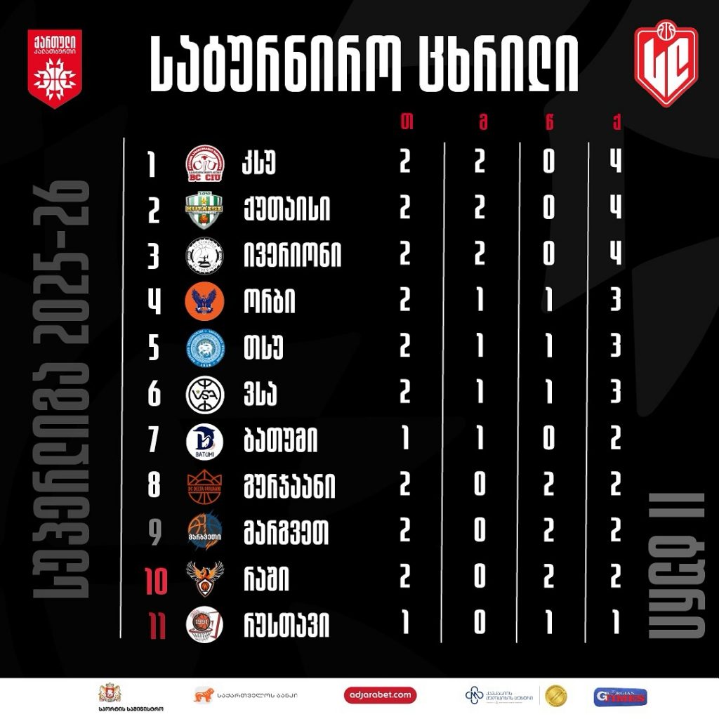 დასრულდა სუპერლიგის მეორე ტური და ცხრილის სათავეში მყოფ კავკასიასა და ქუთაისს გორის ივერიონი შეუერთდა. გორელებმა გასვლითი მატჩი ზესტაფონში მოიგეს, სადაც “მარგვეთი” 94:80 (სტატისტიკა) დაამარცხეს. შიდაქართლელებმა პირველი ტურის მატჩში შინ ვსა დაამარცხა და ლიდერთა სამეულშია.