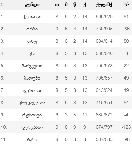 აქ უკვე მატჩის ბედი გადაწყვეტილი იყო. გურჯაანის გუნდმა საბოლოოდ 66:89 (სტატისტიკა) წააგო და მდგომარეობა უფრო დაიმძიმა. დელტა 9-დან ყველა წაგებით ბოლო ადგილზე იმყოფება რაშთან ერთად, რომელსაც 8-დან 8 მარცხი აქვს. გორელებს რაც შეეხებათ, ისევე როგორც კიდევ 4 გუნდს – ვსა-ს, მარგვეთს, ბათუმს და კსუ-კავკასიას, მათაც 5 მოგება და 3 მარცხი აქვთ.