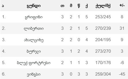 დღეს “ა” ლიგის მე-3 ტური დაიწყო. თბილისსა და კასპში თითო მატჩი გაიმართა, ხოლო ტური ხვალ, თბილისში დასრულდება. თბილისი არენაზე ლიბერთიმ თელავის ბურჯს უმასპინძლა. 2 ტურის შემდეგ ორივე გუნდს თითო მოგება ჰქონდა და შესაბამისად, აღნიშნულ შეხვედრას საკმაოდ დიდი ფასი ჰქონდა.