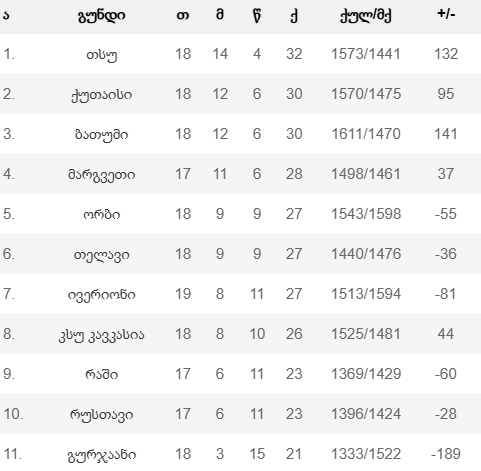 რუსთაველთაგან საუკეთესო შედეგი ნიკოლოზ ჩქოთუამ დააფიქსირა: 11 ქულა, 8 მოხსნა, 5 ჩაჭრა, 3პასი. 12 ქულა ლუკა ტაბაღუას ანგარიშზე დაგროვდა. 11 ლუკა მუჯირიშვილმა მიითვალა. გურჯაანში 20 ქულით საუკეთესო ივანე ბაბუნაშვილი იყო. 15 ქულით დაასრულა მატჩი და ჩემპიონატი ლუკა ლურსმანაშვილმა.