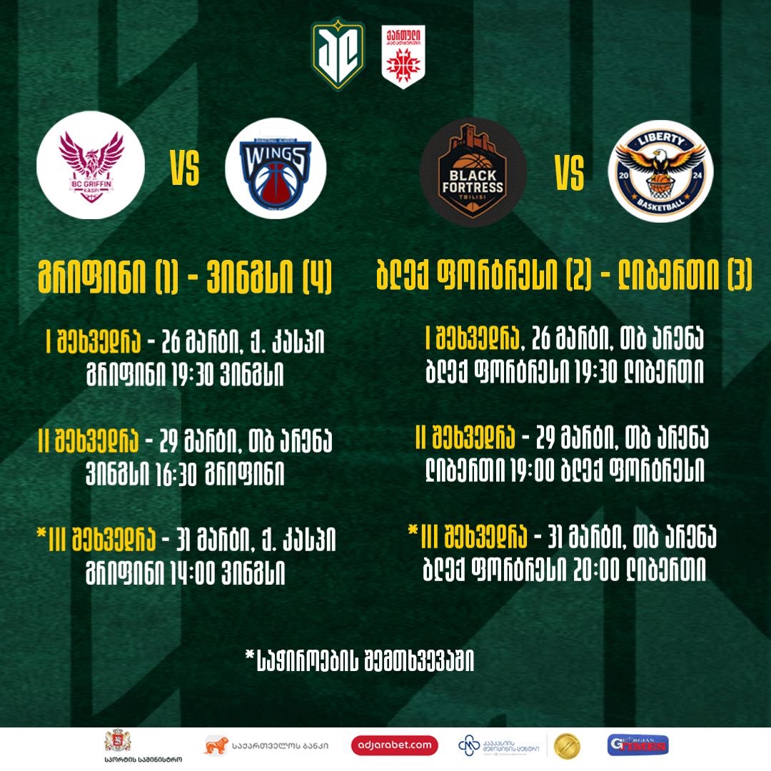 ასე და ამგვარად, პლეი ოფი 26 მარტს დაიწყება და ერთმანეთს, 2 მოგებამდე განგრძობად ნახევარფინალურ სერიებში გრიფინი – ვინგსი და ბლექ ფორტრესი – ლიბერთი შეხვდებიან.