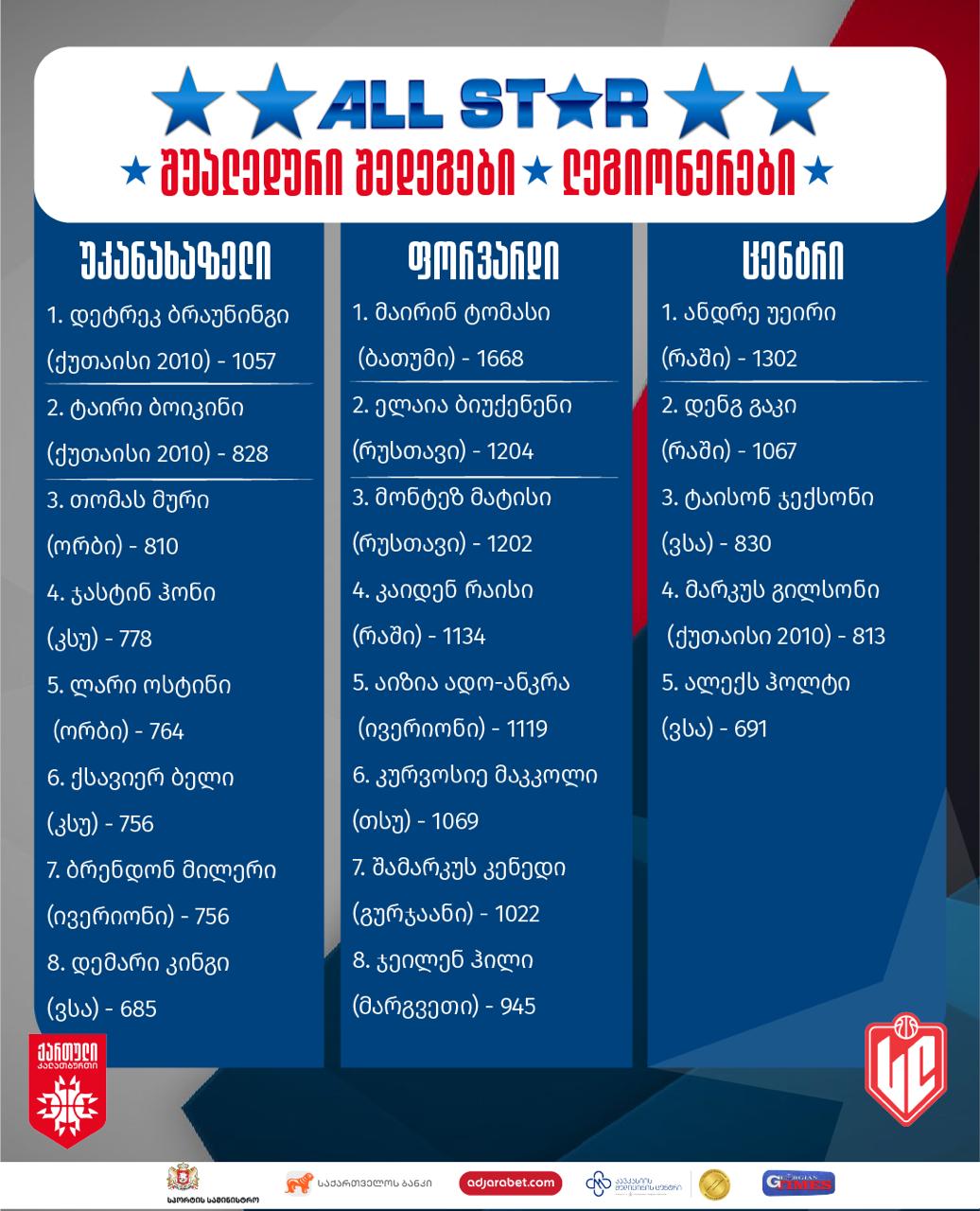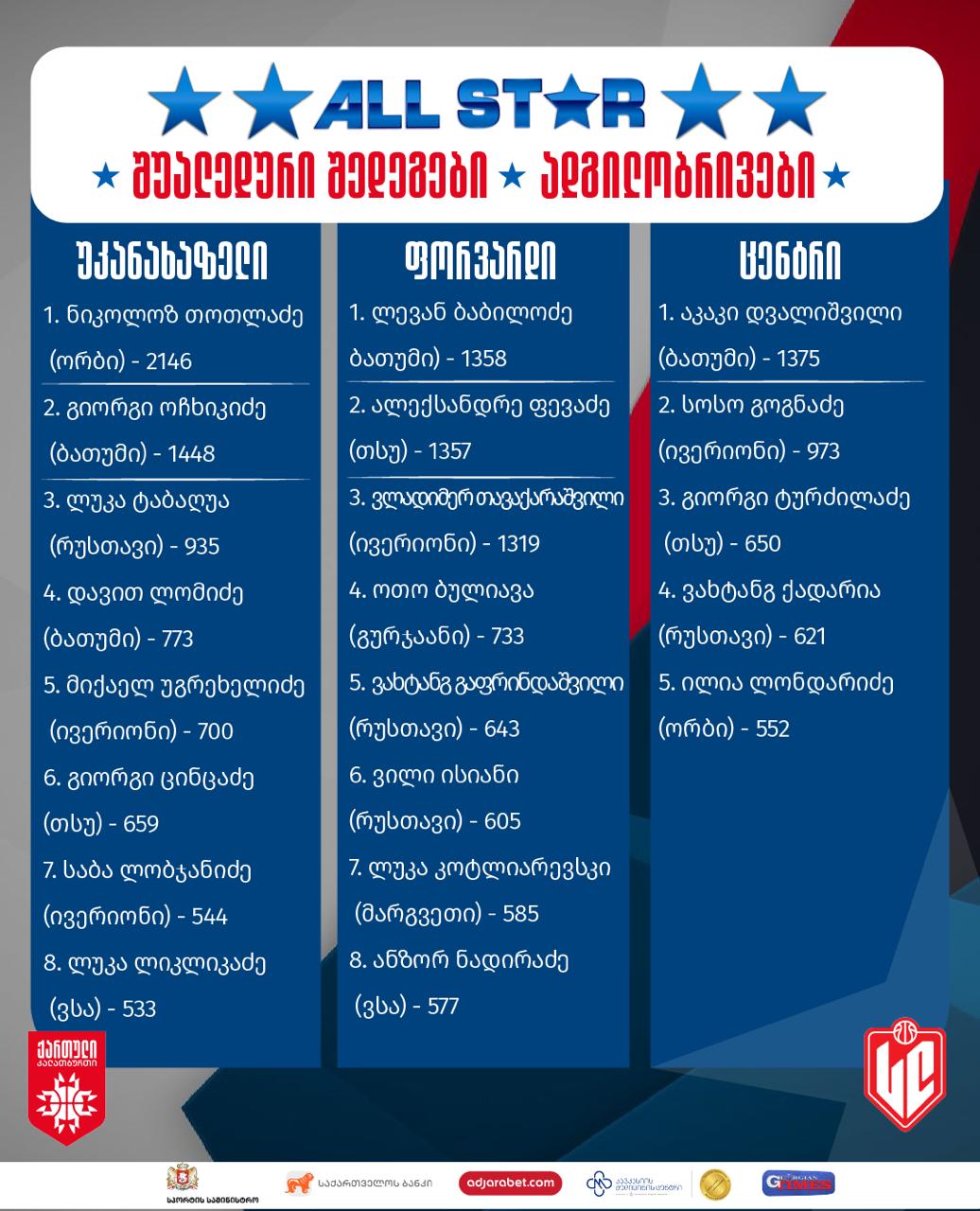 სუპერლიგის ყველა ვარსკვლავის მატჩისთვის გამოკითხვის შუალედური შედეგები