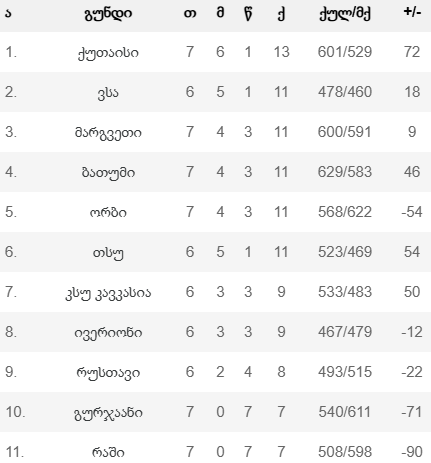 12-ქულიანი ჩამორჩენის შემდეგ ქუთაისმა ბათუმს 17 ქულით სძლია