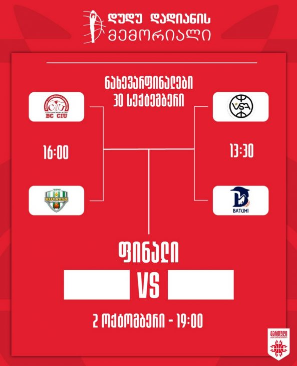 დუდუ დადიანის მემორიალზე ნახევარფინალისტები გამოვლინდნენ. 30 სექტემბერს ფინალში გასასვლელად კსუ ქუთაისს დაუპირისპირდება, ხოლო ვსა – ბათუმს. ხსენებული გუნდებიდან ქუთაისელთა გარდა თავიანთ ჯგუფებში პირველ ადგილზე გავიდნენ, ქუთაისი კი საუკეთესო მეორეადგილოსანი აღმოჩნდა.