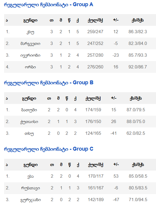შედეგად ტყიბულის გუნდმა იოლი გამარჯვება მოიპოვა, რამაც ჯგუფში არაფერი შეცვალა. ორბი ბოლო ადგილზე გავიდა, ხოლო კსუ პირველზე და თან ისე, რომ საბოლოოდ პირველადგილოსანთაგან საუკეთესო შედეგი დააფიქსირა.